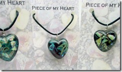 "Piece of my Heart" are available on silken nylon cord, with or without dangles, on hemp, with semiprecious beadwork and with simpler beadwork.